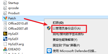15.选中粘贴过来的“Patch”文件,右键选择“以管理员身份运行”