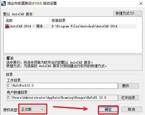 温馨提示:安装鸿业市政道路软件必须提前在电脑上安装AutoCAD ,鸿业市政道路10.0支持CAD 2007-2014