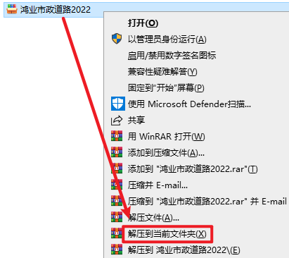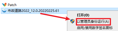 2.打开刚刚解压的文件夹,选中“市政道路2022_12.0.20220225.61”右键选择“以管理员身份运行”