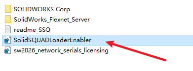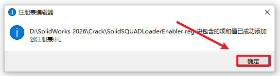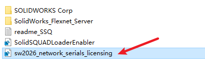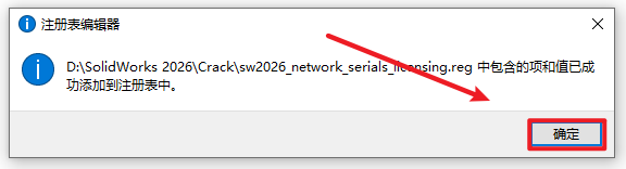 2.打开刚刚解压的文件夹,双击打开”Crack“文件夹,双击运行”sw2026_network_serials_licensing.reg“注册表文件