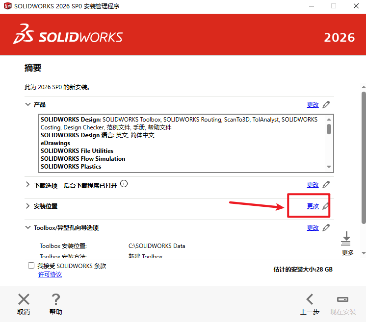 18.点击“安装位置”后的“更改”选择软件安装路径