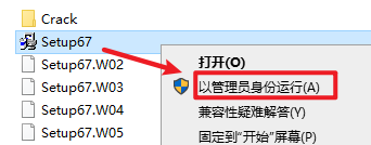 4.返回安装文件夹,选中“Setup67”文件,右键选择“以管理员身份运行”