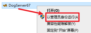 2.打开刚刚解压的文件夹,依次打开“MapGIS 6.7——Crack”文件夹,选中“DogServer67”右键选择“以管理员身份运行”