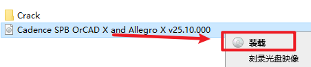 2.选中“Cadence SPB OrCAD X and Allegro X v25.10.000”文件,右键选择“装载”(如果没有“装载”选项的可以右键选择“打开方式—Windows资源管理器”打开)