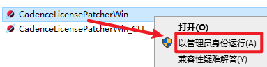 10.返回安装文件夹,双击打开“Crack”文件夹,选中“CadenceLicensePatcherWin.exe”文件,右键选择”以管理员身份运行“