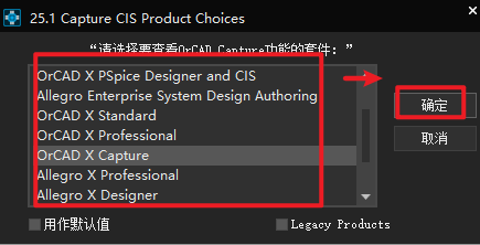 16.根据需要选择相应的OrCAD套件,点击“确定”