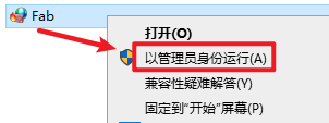 9.返回安装文件夹,双击打开“防火墙规则设置(禁止联网)”,找到并选中“Fab”,右键选择“以管理员身份运行”