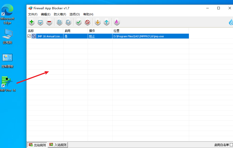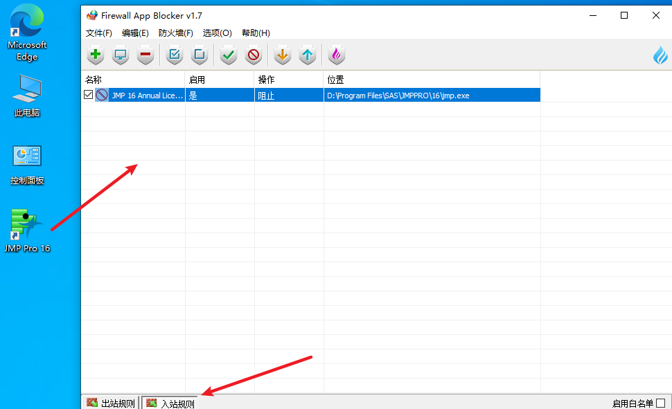 11.点击“入站规则”,将JMP Pro 16程序再次拖动到程序界面中