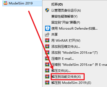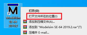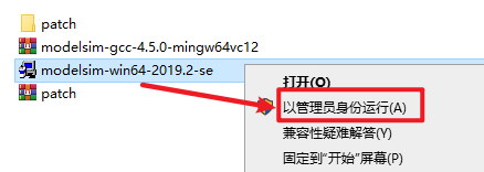 2.打开刚刚解压的文件夹,选中“modelsim-win64-2019.2-se.”文件,右键选择“以管理员身份运行”