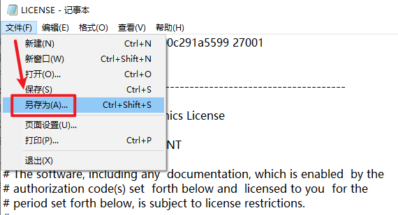 15.等待生成许可证“LICENSE.TXT”文件自动弹出,点击“文件—另存为”