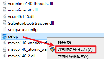 3.在打开的文件夹,找到并选中“setup”文件,右键选择“以管理员身份运行”