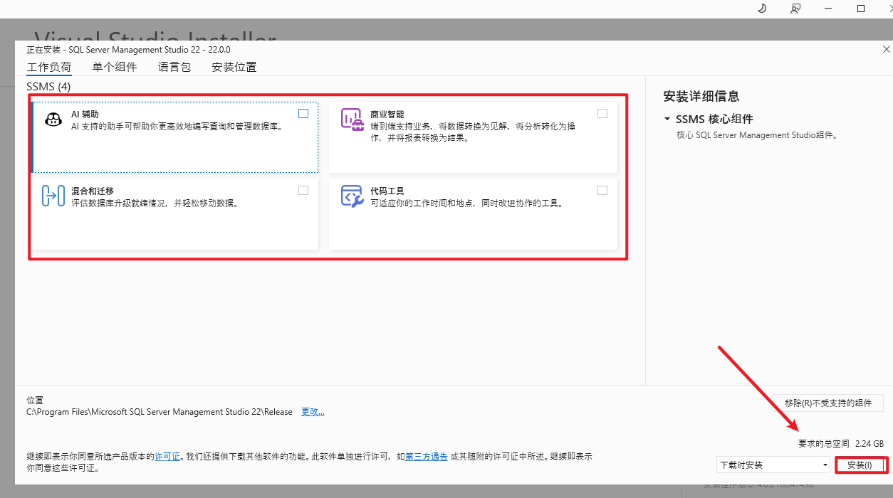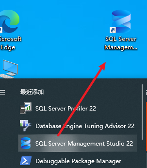 22.在开始菜单中找到”Microsoft SQL Server Management Studio 22”软件,拖拽到桌面上即可创建桌面快捷方式