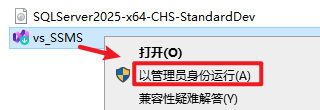 17.返回安装文件夹,选中“vs_SSMS.exe”文件,右键选择 “以管理员身份运行”