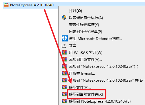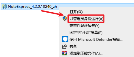 2.打开刚刚解压的文件夹,选中“NoteExpress_4.2.0.10240_zh”右键选择“以管理员身份运行”