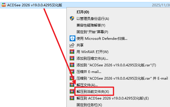 2.打开刚刚解压的文件夹,选中“acdsee-photo-studio-ultimate-2026-0-0-4295-win-en”右键选择“以管理员身份运行”