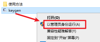 12.返回安装文件夹,打开“Crack”文件夹,选中“keygen”文件,右键选择 “以管理员身份运行”