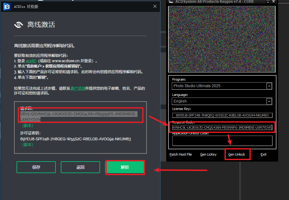 14.将生成的请求码复制到Request Code,点击“Gen Unlock”,点击“解锁”
