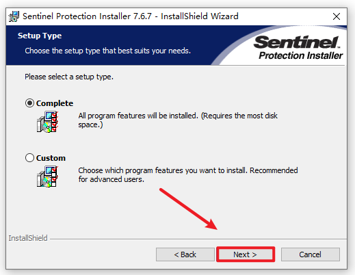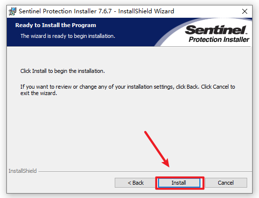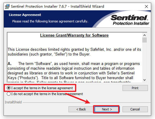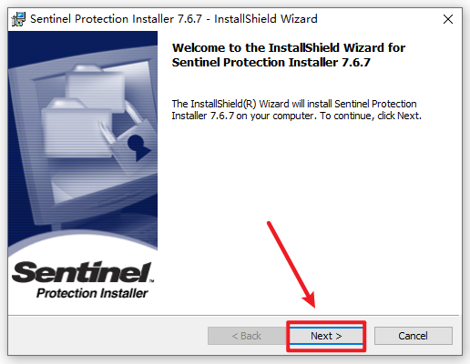 5.返回安装文件夹,选中“Sentinel Protection Installer 7.6.7”右键选择“以管理员身份运行”