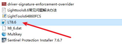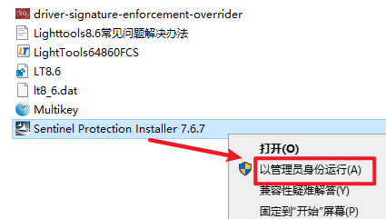 32.如果打开lighttools8.6软件后卡住或者重复要求导入证书的解决方法,返回安装文件夹,选中“driver-signature-enforcement-overrider”右键选择“以管理员身份运行”