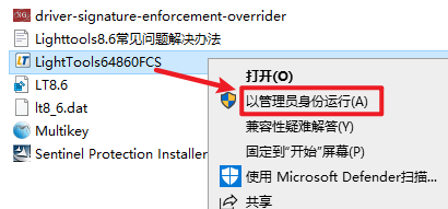 16.返回安装文件夹,选中 “LightTools64860FCS”右键选择“以管理员身份运行”