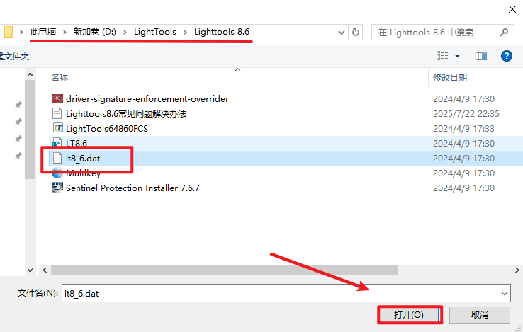 28.选择安装文件夹中的“lt8_6.dat”文件,点击“打开”