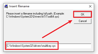 36.在框中填入“C:\Windows\System32\drivers\multikey.sys“,点击”OK”