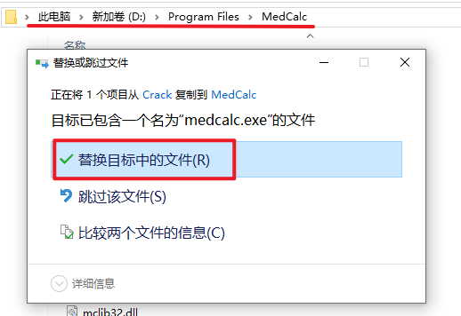 9.返回安装文件夹,双击打开”Crack“文件夹,复制”medcalc”文件