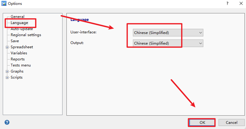 14.Language选择“Chinese(Simplified)”更改为中文,点击“OK”