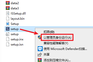 2.打开刚刚解压的文件夹,双击打开“Setup”文件,选中“setup”右键选择“以管理员身份运行”