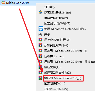 1.选中下载的压缩包,然后右键选择解压到“midas Gen 2019”