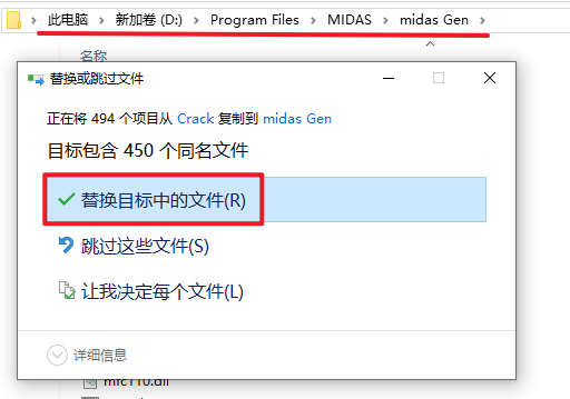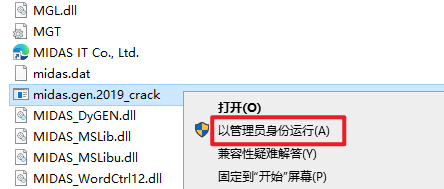 23.完成替换操作之后,选中粘贴过来的“midas.gen.2019_crack”文件,右键选择“以管理员身份运行”