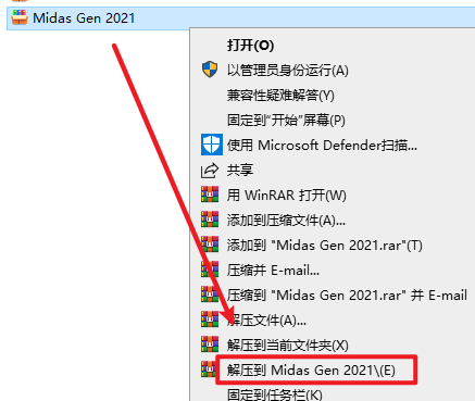 1.选中下载的压缩包,然后右键选择解压到“midas Gen 2021”