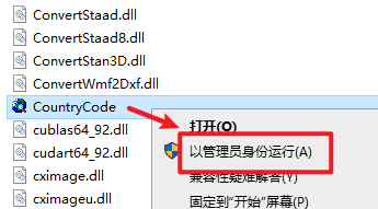 17.继续在文件夹下,找到并选中“CountryCode”文件,右键选择“以管理员身份运行”