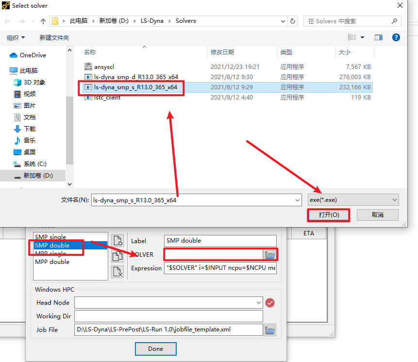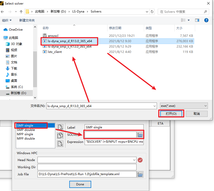 17. double选择ls-dyna_smp_s_R13.0_365_x64.exe,点击”打开“