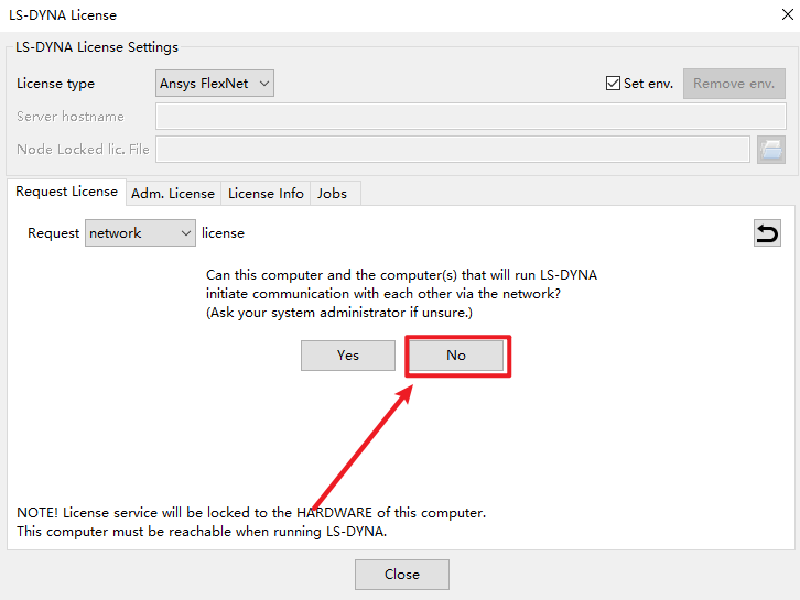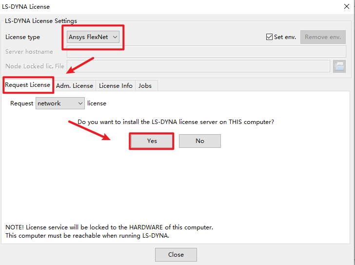 12.点击“Ansys FlexNet”,点击“Request License”,点击“Yes”