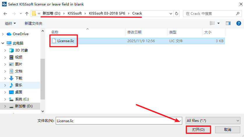 14.选中安装包中生成的“License.lic”许可证文件,点击”打开”