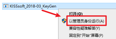 11.返回安装文件夹,双击打开“Crack”文件夹,选中“KISSsoft_2018-03_KeyGen”文件,右键选择“以管理员身份运行”