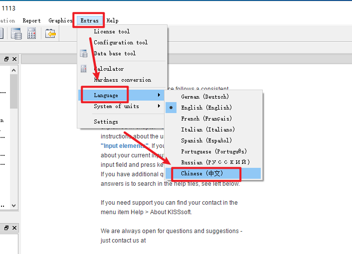 18.点击菜单栏“Extras”,点击“Language”,选择“Chinese(中文)“