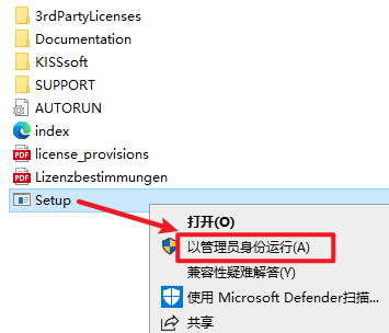 2.打开刚刚解压的文件夹,双击打开“KISSsoft 2022”文件夹,选中“Setup”右键选择“以管理员身份运行”