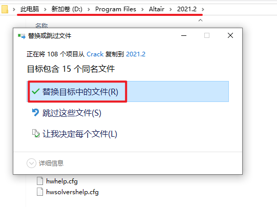 14.粘贴复制的文件到该路径下,选择“替换目标中的文件”