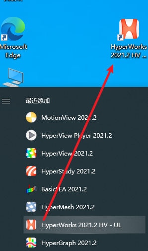 15.在开始菜单中找到”HyperWorks 2021.2″软件(根据需求可以选择HyperMesh、HyperStudy,HyperView等软件),键拖拽到桌面上即可创建桌面快捷方式