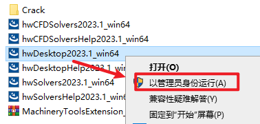 2.打开刚刚解压的文件夹,选中“hwDesktop2023.1_win64”右键选择“以管理员身份运行”