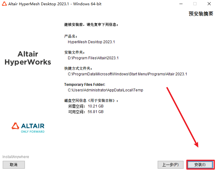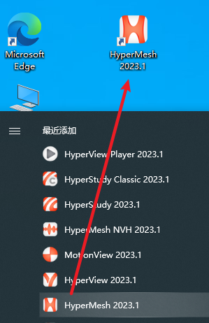 21.在开始菜单中找到”HyperMesh 2023.1″软件(根据需求可以选择HyperStudy、HyperView等组件),拖拽到桌面上即可创建桌面快捷方式
