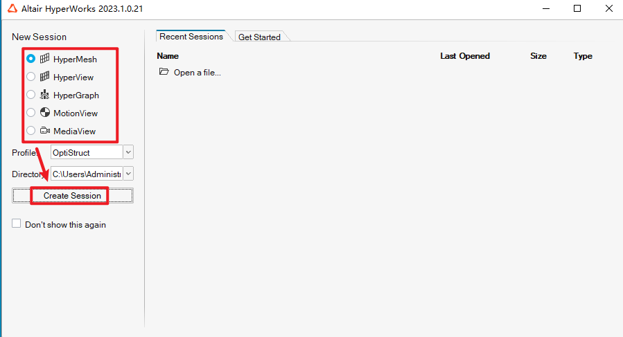 23.选择需要的软件,点击“Create Session“