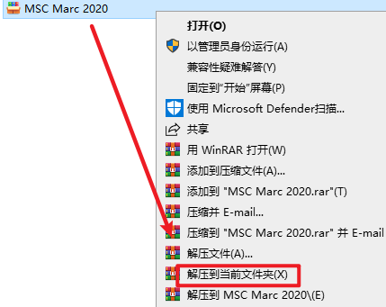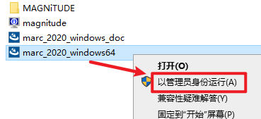20.返回安装文件夹,找到并选中“marc_2020_windows64”,右键选择“以管理员身份运行”
