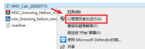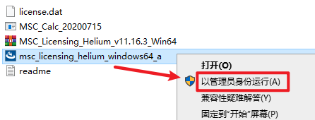 7.返回安装文件夹,此时该文件夹生成了一个”license.dat”许可证文件,选中“msc_licensing_11.13.3_windows64”右键选择“以管理员身份运行”