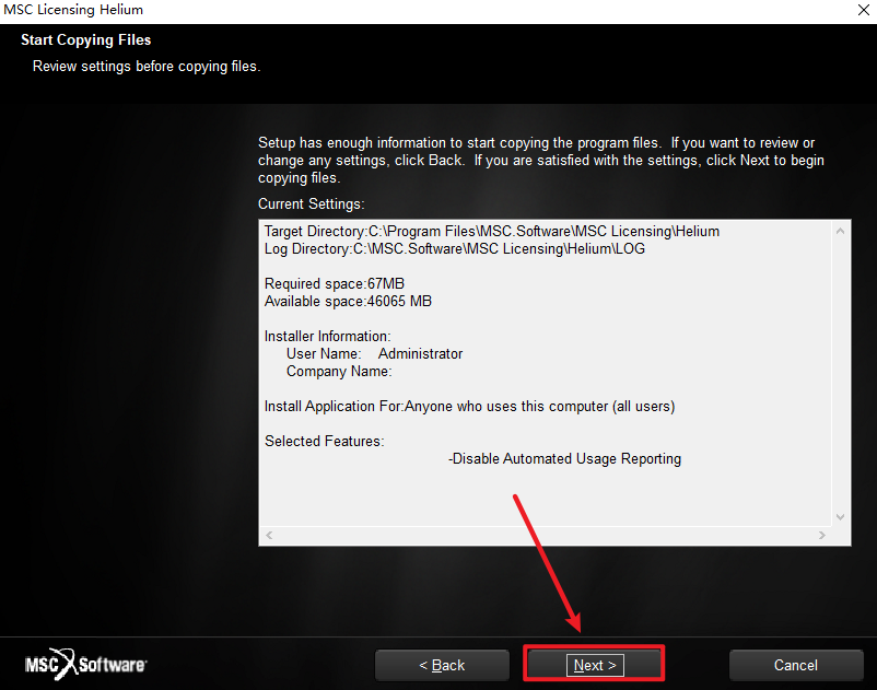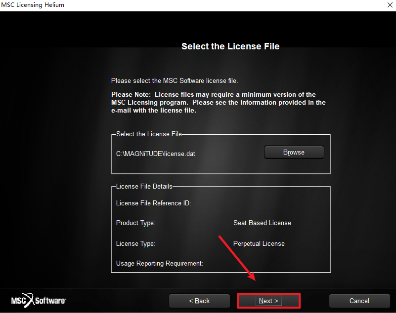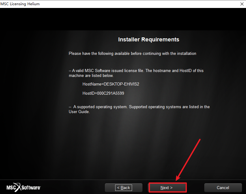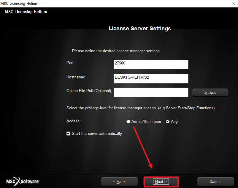 25.在License栏输入:27500@计算机全名,点击“Next”