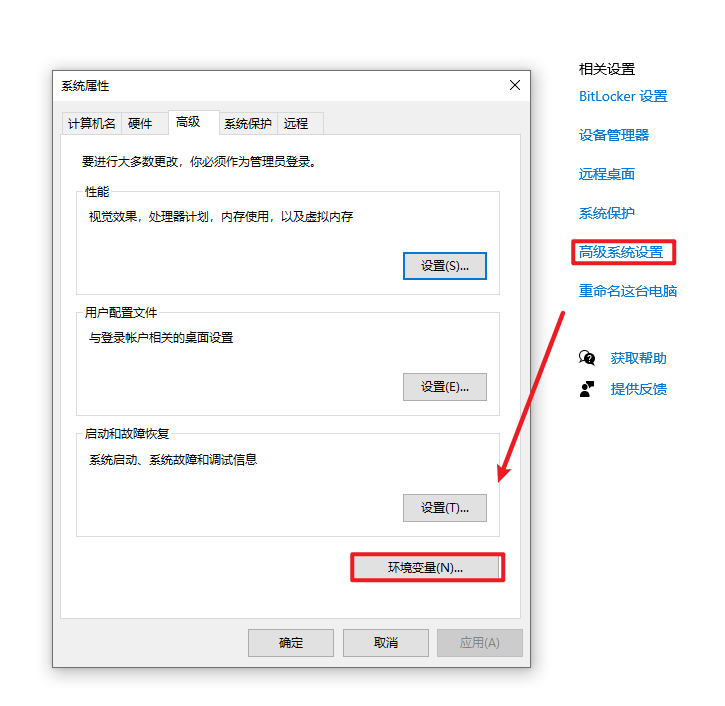 31. 点击“高级系统设置”,点击“环境变量”