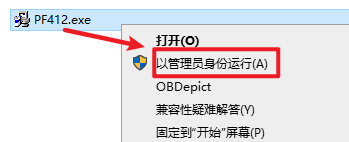 2.选中“PF412”,右键选择“以管理员身份运行”