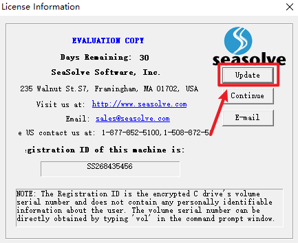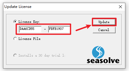 12.在弹出框中输入:DAA6CD55-FBFB1907,点击“Update”